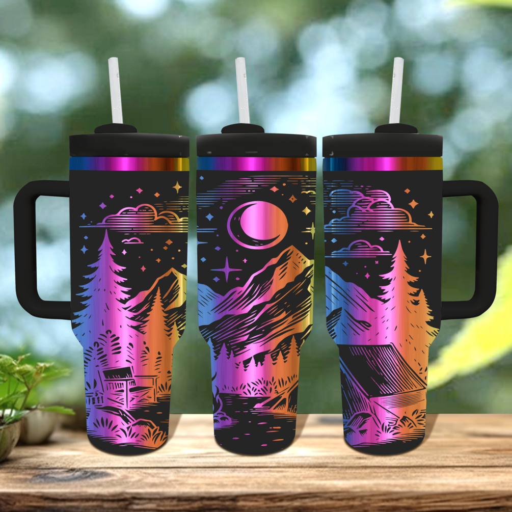 Camping Landscape Moon Engraved 40oz Tumbler SVG, PDF File, SVG File, 40oz Tumbler Wrap Design.