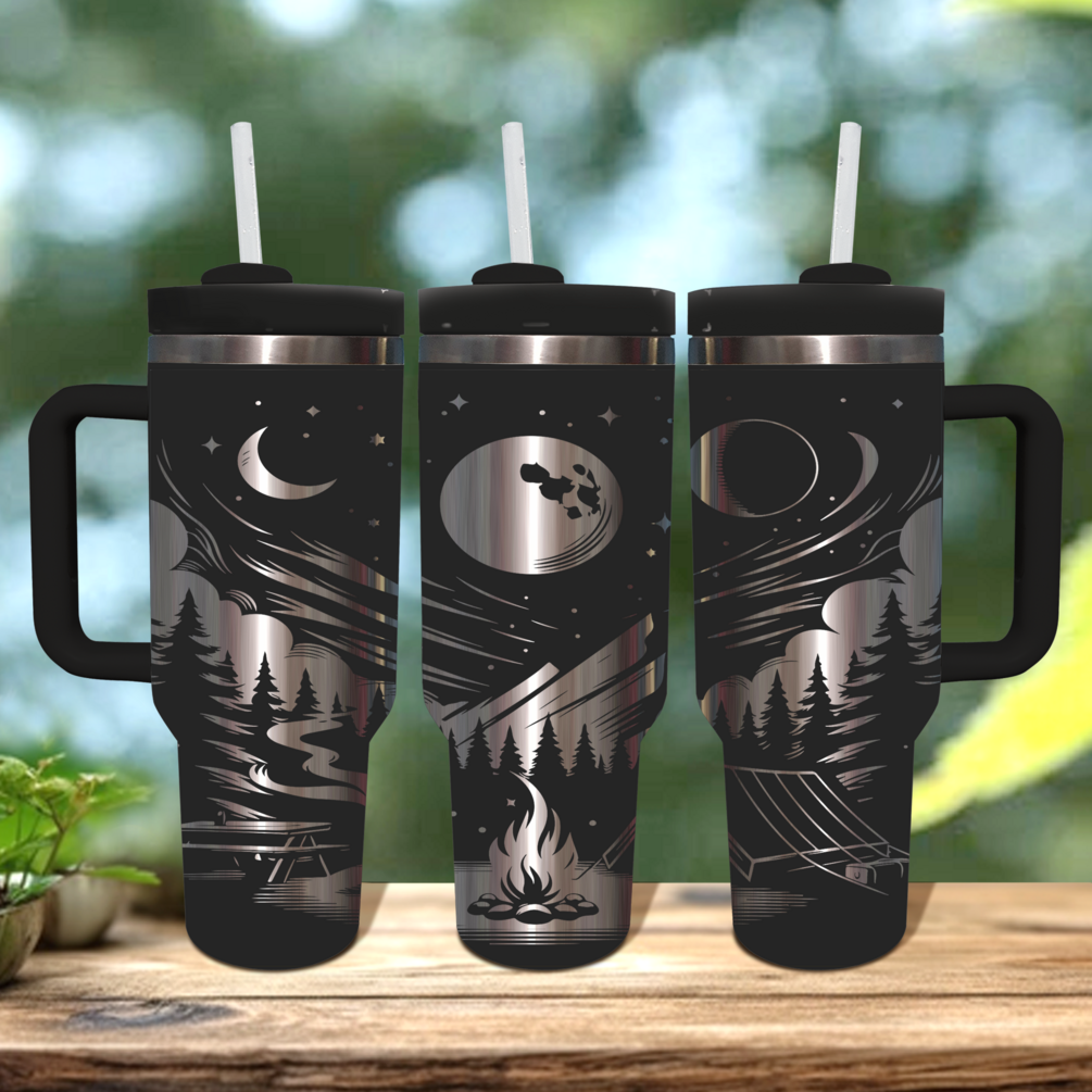 Camping Under Moon Art Engraved 40oz Tumbler SVG, PDF File, SVG File, 40oz Tumbler Wrap Design.