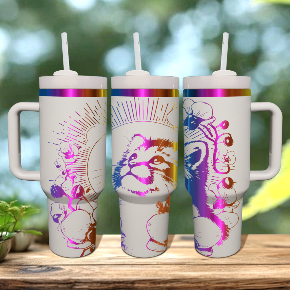 Orchids Cat Sun Engraved 40oz Tumbler SVG, PDF File, SVG File, 40oz Tumbler Wrap Design.