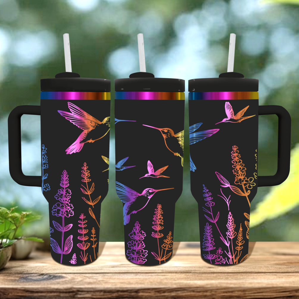 Hummingbird Lavender Engraved 40oz Tumbler SVG, PDF File, SVG File, 40oz Tumbler Wrap Design.