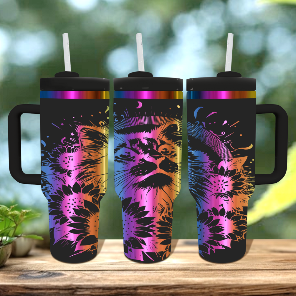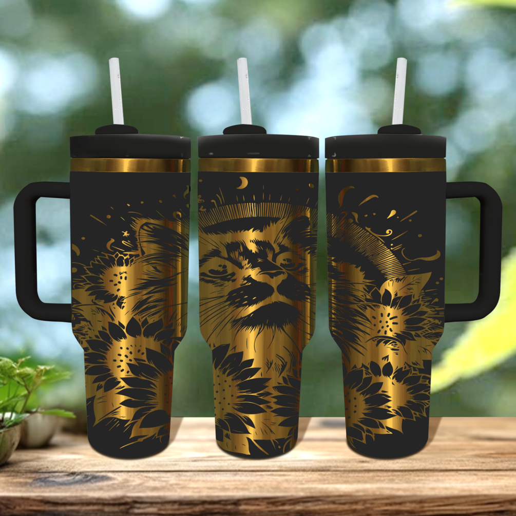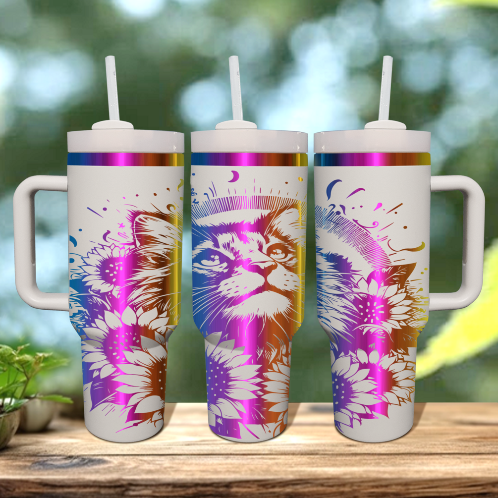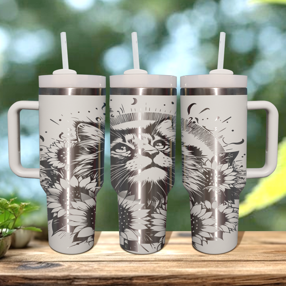 Cat Sunflower Sun Engraved 40oz Tumbler SVG, PDF File, SVG File, 40oz Tumbler Wrap Design.