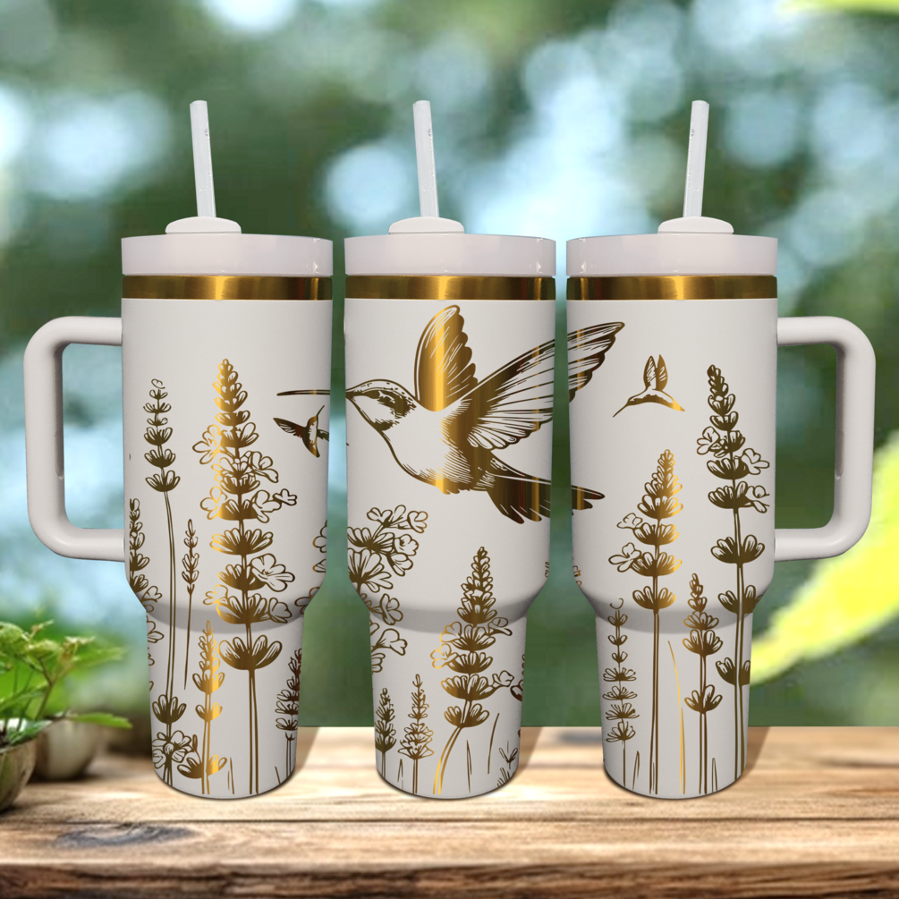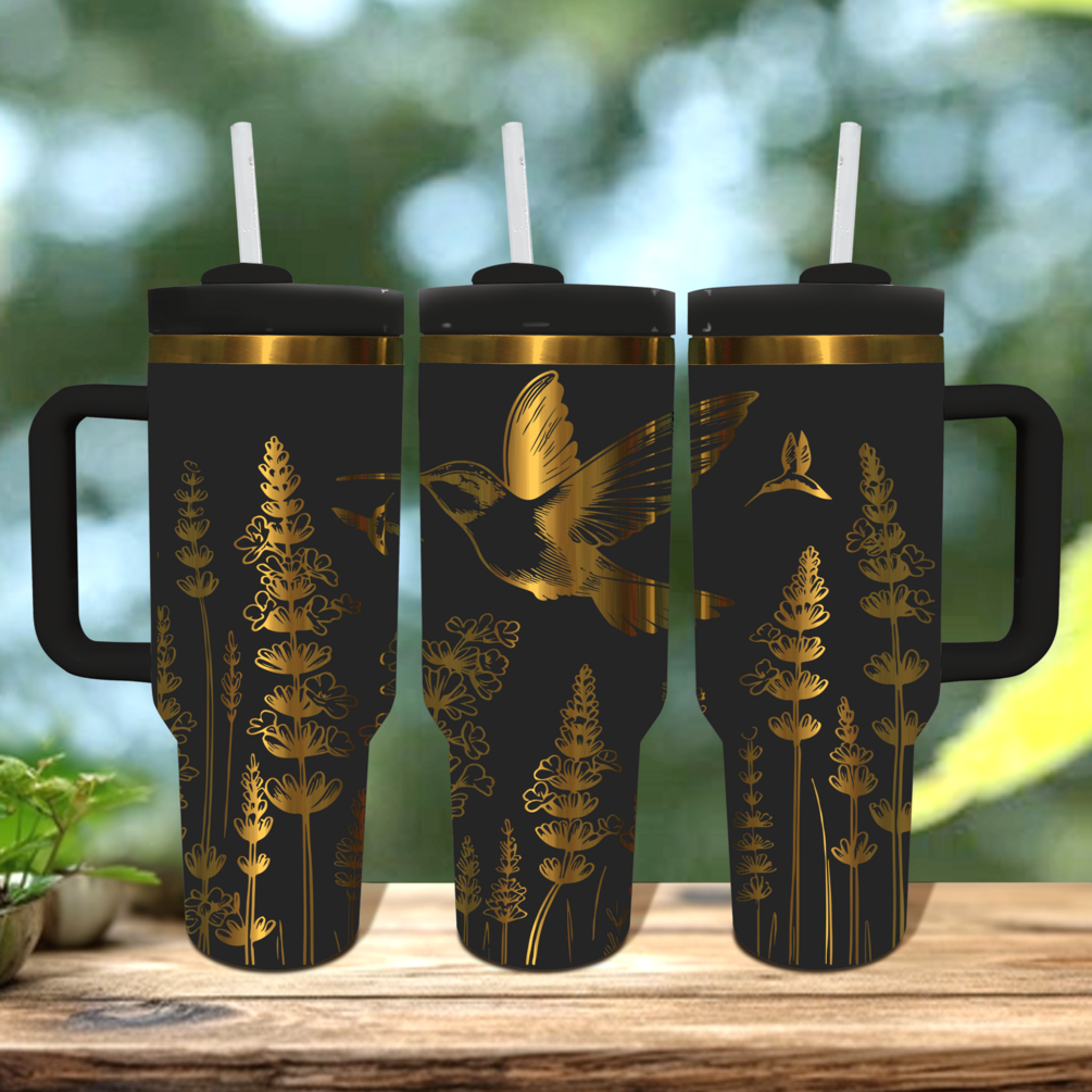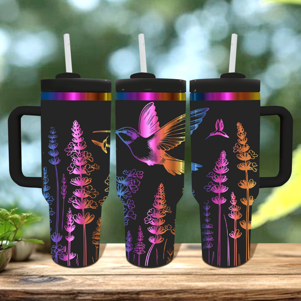 Hummingbird Lavender Engraved 40oz Tumbler SVG, PDF File, SVG File, 40oz Tumbler Wrap Design.