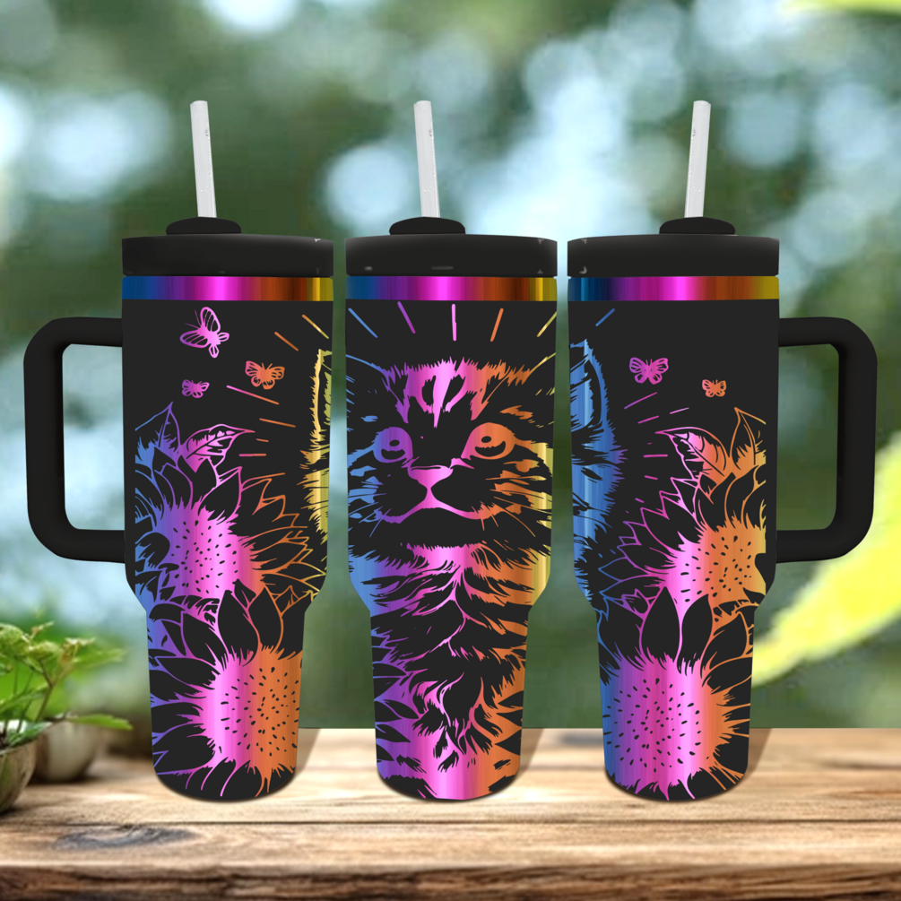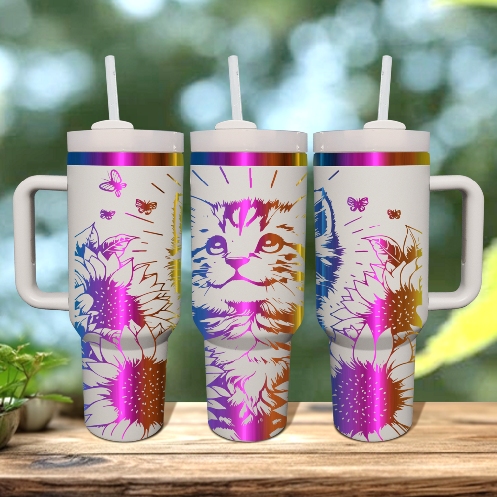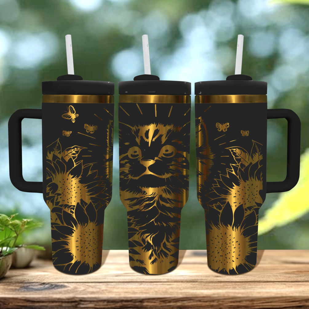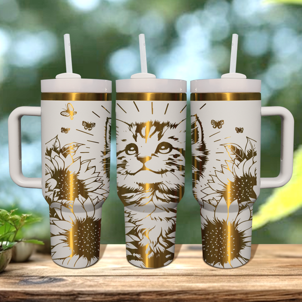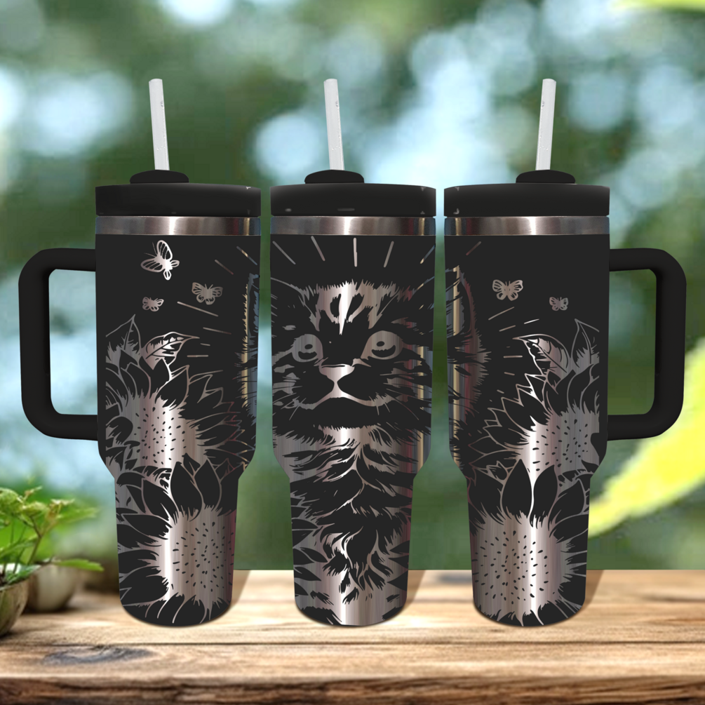 Cat Sunflower Butterfly Engraved 40oz Tumbler SVG, PDF File, SVG File, 40oz Tumbler Wrap Design.
