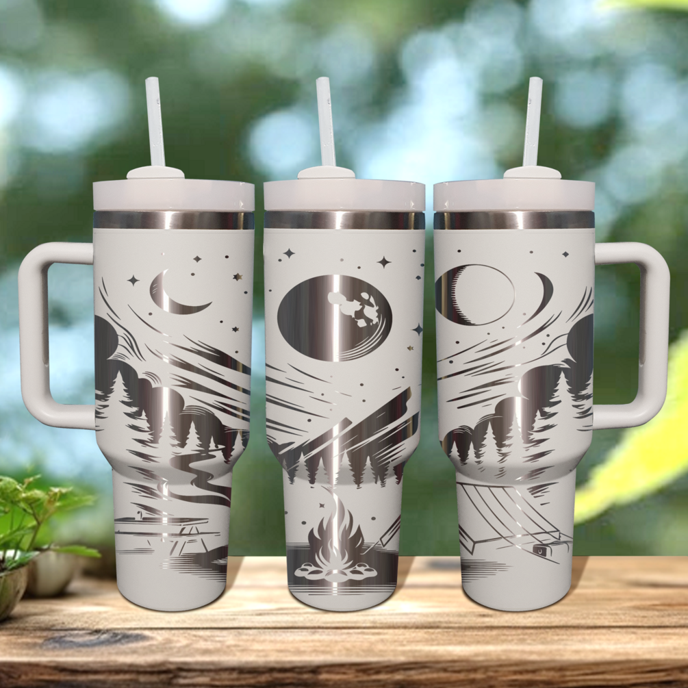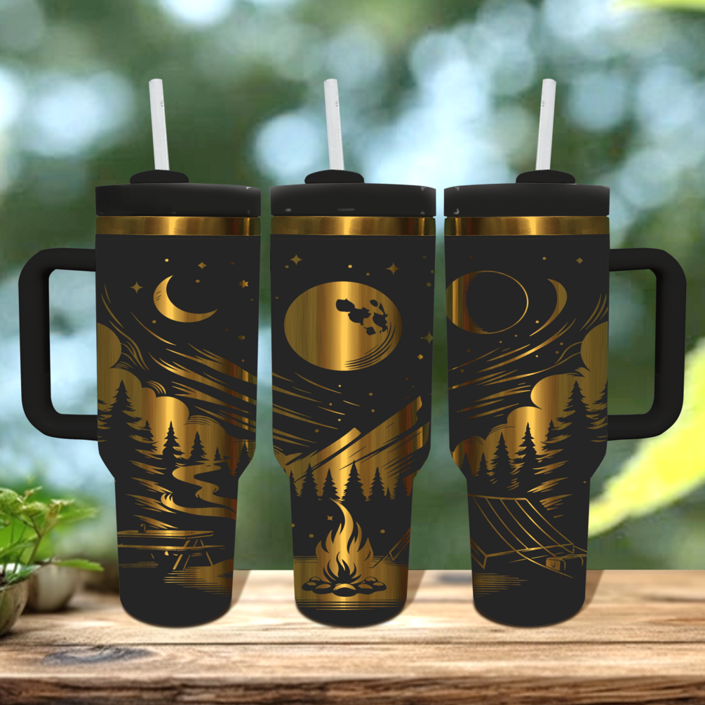 Camping Landscape Moon Engraved 40oz Tumbler SVG, PDF File, SVG File, 40oz Tumbler Wrap Design.